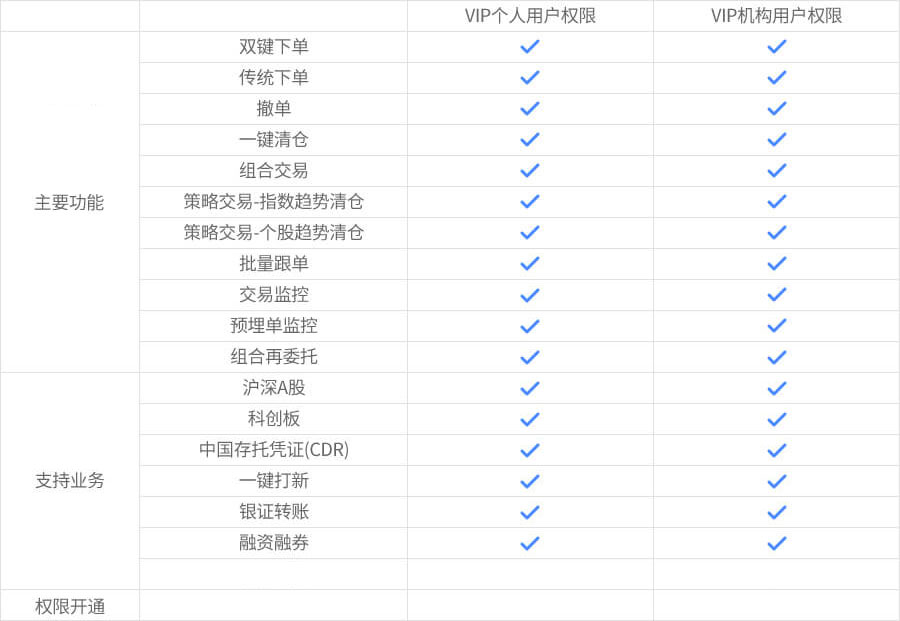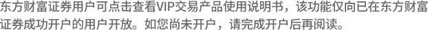申请使用VIP交易功能前,您需先点击下方“立即开户”按钮开立东方财富证券账户;已开户用户可点击“开通权限”了解申请详情。VIP交易助您开启智能交易‘云’旅程。