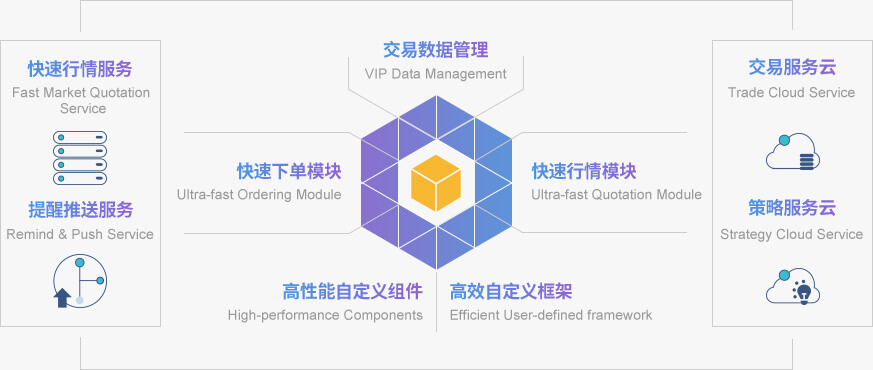 支持数据实时传输推送,提供真实的交易现场,获取交易行情、资产持仓、委托成交、预埋单等页面的实时刷新及推送数据